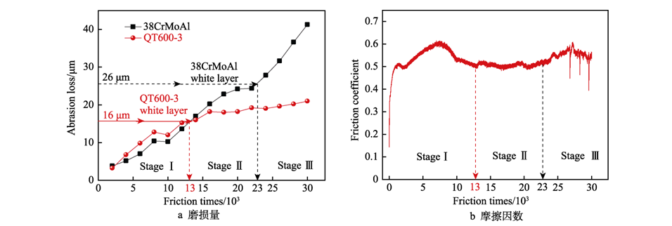 磨损量和摩擦因数随摩擦次数的变化曲线
