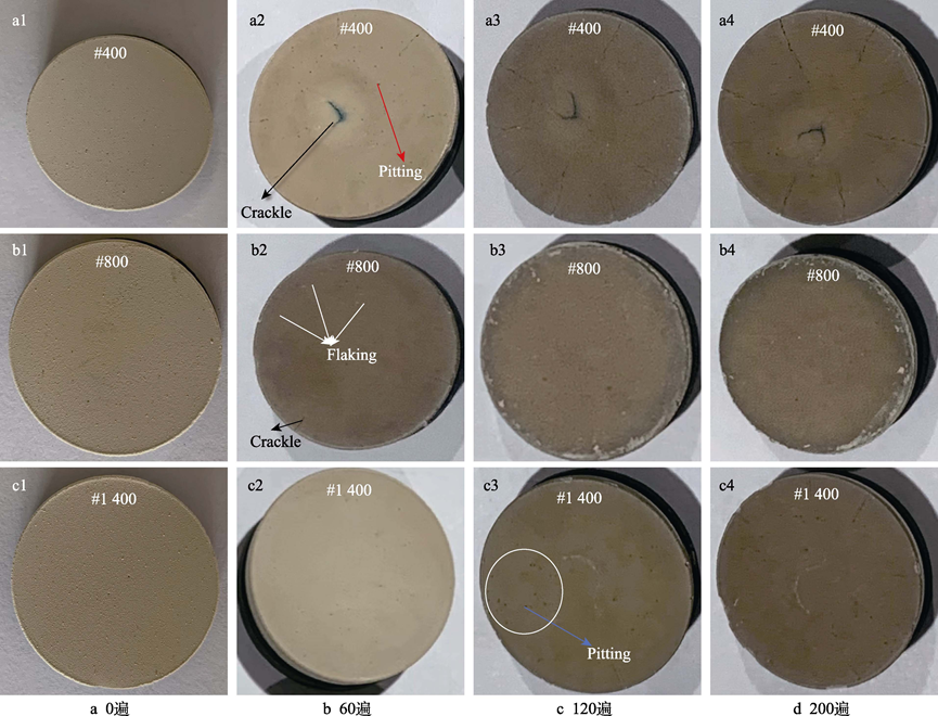 1)随着团聚粉末粒度的减小,团聚粉末的球形度逐渐变低,粉末流动性也随之变差。同时,团聚粉末内部的孔隙率变大,#400粉末内部均匀致密,#1400粉末内部相对疏松多孔。